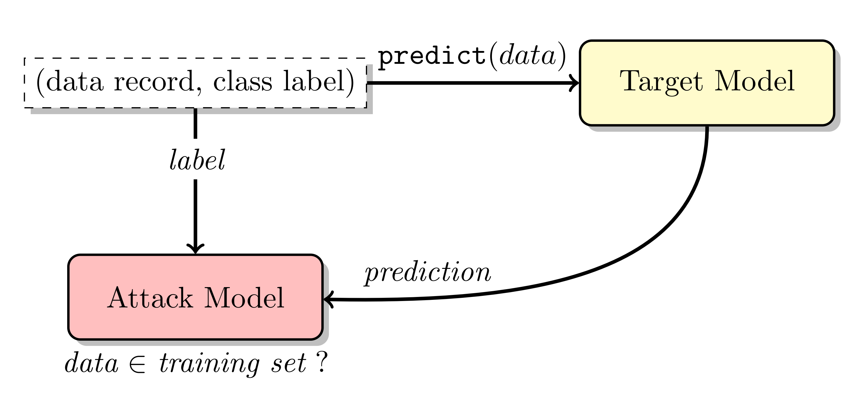 \[\text{Infer}(\text{Membership}) = \begin{cases} \text{Member} & \text{if } L(F(x), y) < \tau \\ \text{Non-member} & \text{if } L(F(x), y) \geq \tau \end{cases}\]where $\tau$ is a threshold chosen based on the model’s loss distribution.